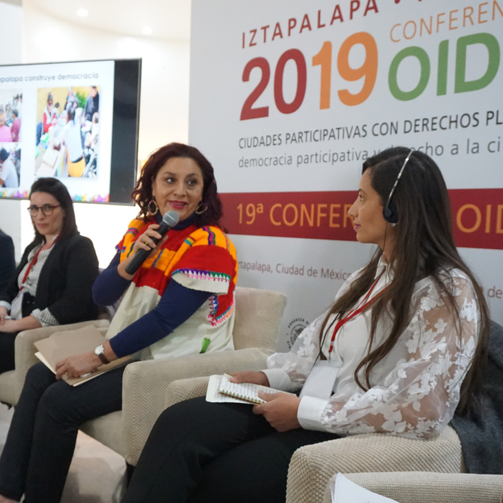 La Conferencia Anual del OIDP fue acogida por su presidenta en 2019: la Primera Alcaldía de Iztapalapa. Se trata de un gobierno reciente, parte del conjunto urbano de una de las áreas metropolitanas más grandes del mundo. En este contexto, el liderazgo del OIDP llevó la voz de las y los residentes de los entornos urbanos periféricos en los debates sobre democracia participativa. Asumiendo el derecho a la ciudad y la concreción de unos derechos plenos como alternativa a la financiarización, el crecimiento de las desigualdades y la crisis ecológica, la Conferencia tejió una narrativa transformadora que permite imaginar nuevos medios para defender la justicia social y territorial de la mano de las y los habitantes.
