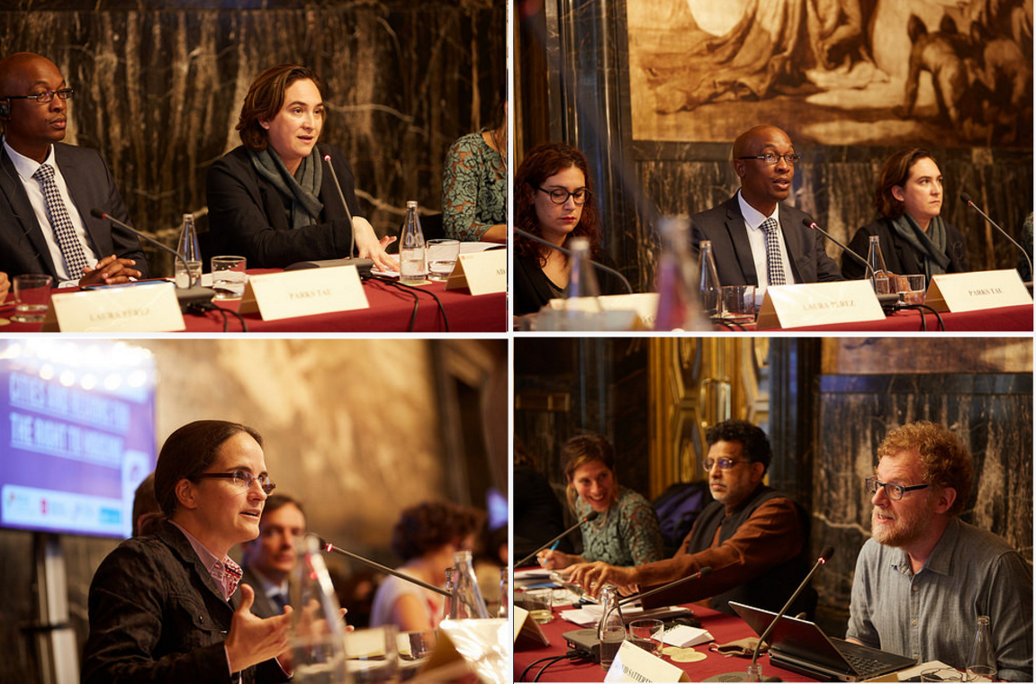 Le 3 novembre, le président de CGLU, Parks Tau, la maire de Barcelone, Ada Colau, la rapporteuse spéciale des Nations Unies sur le droit au logement, Leilani Farha et Lorena Zarate de Habitat International Coalition ont participé à l'événement public « Les Villes pour le droit au logement » à la Mairie de Barcelone.