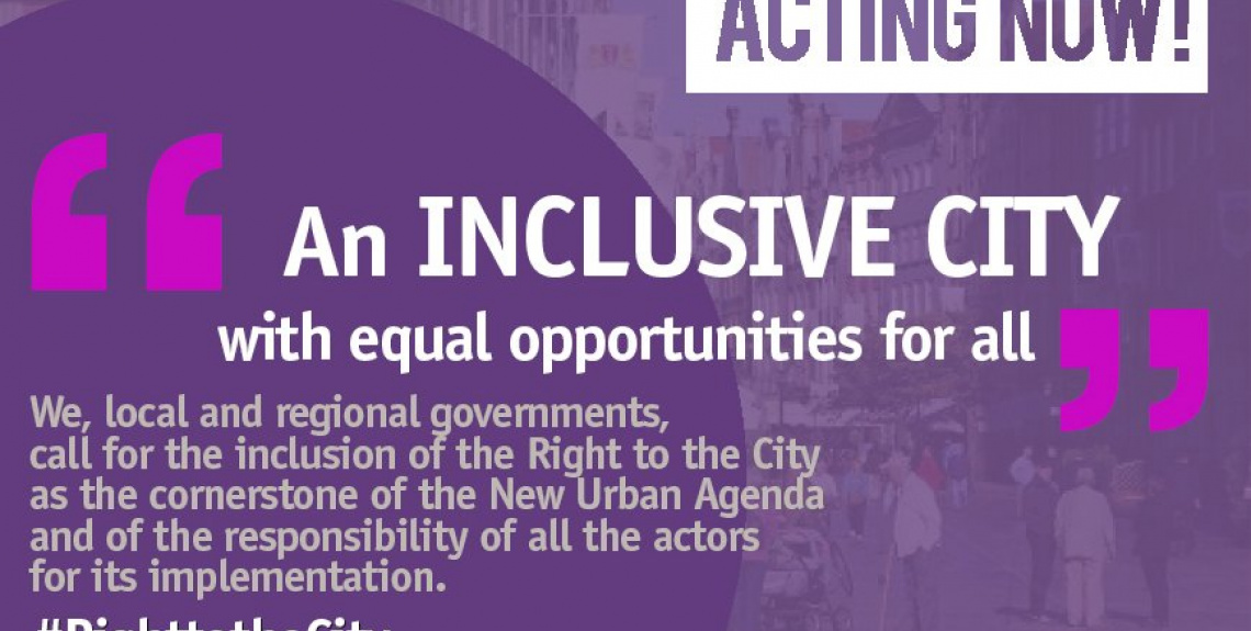 In the context of the preparatory process towards Habitat III and inspired by the occasion of Human Rights Day 2015, we, local and regional governments, call for the inclusion of the Right to the City as the cornerstone of the New Urban Agenda and of the responsibility of all the actors for its implementation.
