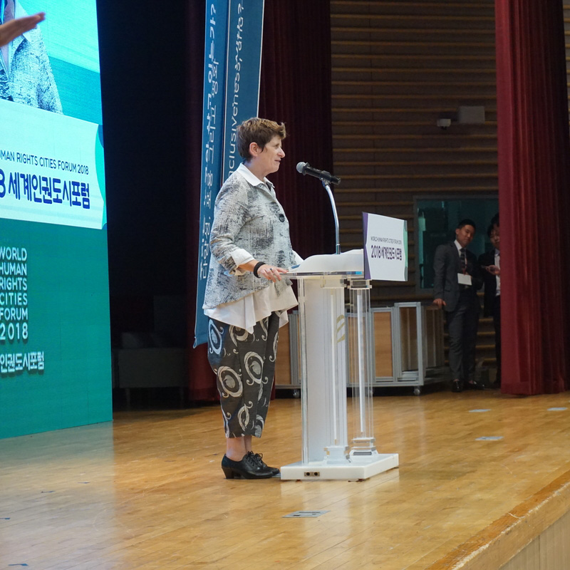 The participation of Deputy High-Commissioner Gilmore marked a clear step forward towards the international recognition of local governments’ role in the promotion of human rights; key cornerstone of the advocacy strategy led by our member-local governments since 2015. As keynote speaker of the Conference, Ms. Gilmore thanked the city of Gwangju and the human rights cities movement for their initiative and for providing hope in standing up for human rights. She also noted how, on the 70 anniversary of the Universal Declaration of Human Rights, the OHCHR is launching a global call to “Bring Human Rights Home”, in worldwide cities and human settlements.