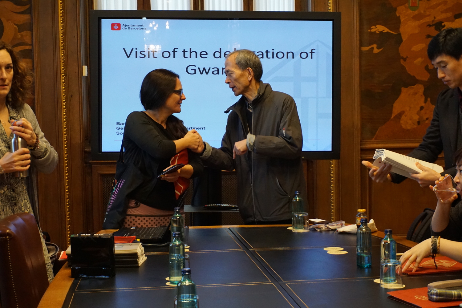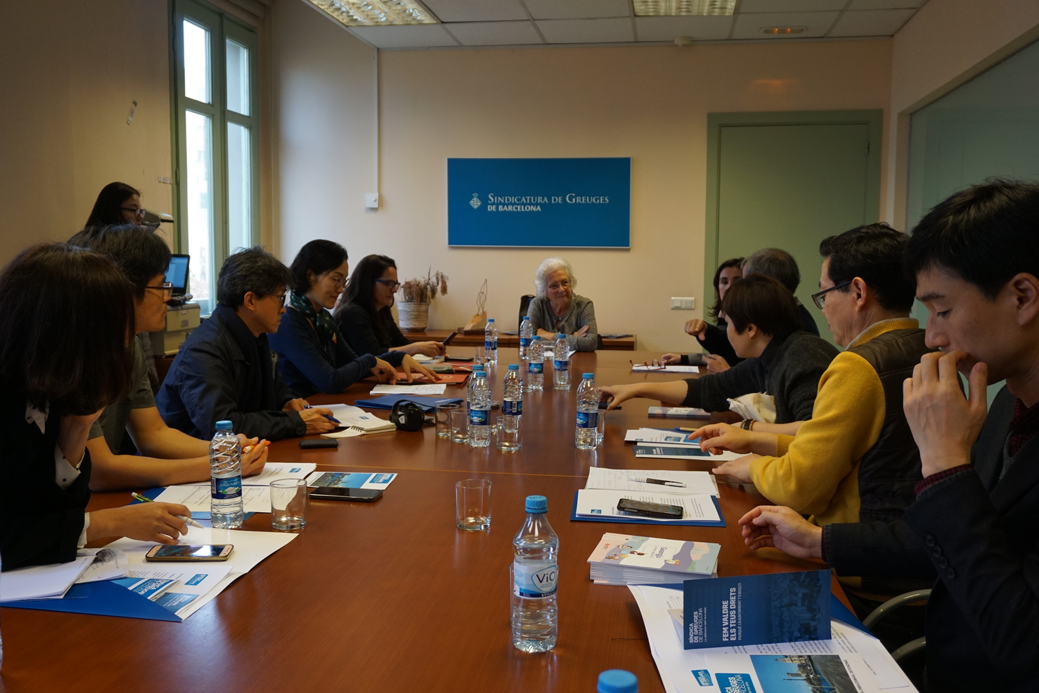 The Gwangju Delegation then travelled to the headquarters of Barcelona's Síndica de Greuges (local ombudsperson), where an interesting exchange took place between the four Gwangju ombudsperson (working in areas such as right to work or gender equality) and Barcelona’s Síndica de Greuges. Despite some format or thematic differences, the meeting highlighted the importance of counting with mechanisms such as this one in order to improve human rights guarantee, while allowing to draw lessons from similar experiences.