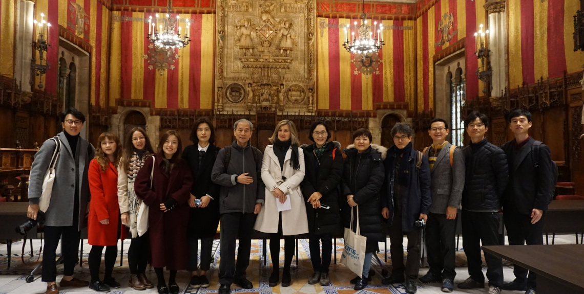 Throughout December 12, the Gwangju Delegation held several bilateral meetings with representatives of the city of Barcelona after the invitation of Aida Guillén, Directress of the Department of Citizenship Rights and Diversity. During these meetings, the South Korean delegation was able to visit the Casa de la Ciutat (headquarters of the municipal government of Barcelona since the Middle Ages) and meet with representatives of local human rights initiatives, in particular those to defend feminism and LGBTI communities.