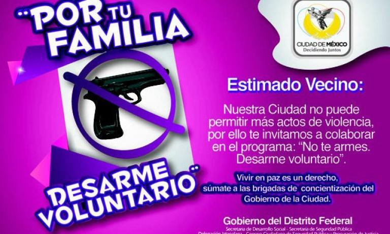 In December 2012, the mayor of Mexico City, Dr. Miguel Angel Mancera Espinosa, launched the "For your Family, Voluntary Disarmament"program, which aims to prevent crime…