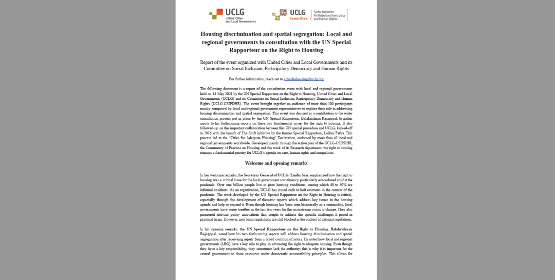 Informe elaborado en seguimiento de la Consulta sobre la discriminación en la vivienda y la segregación espacial celebrada con el Relator de la ONU sobre la vivienda.
