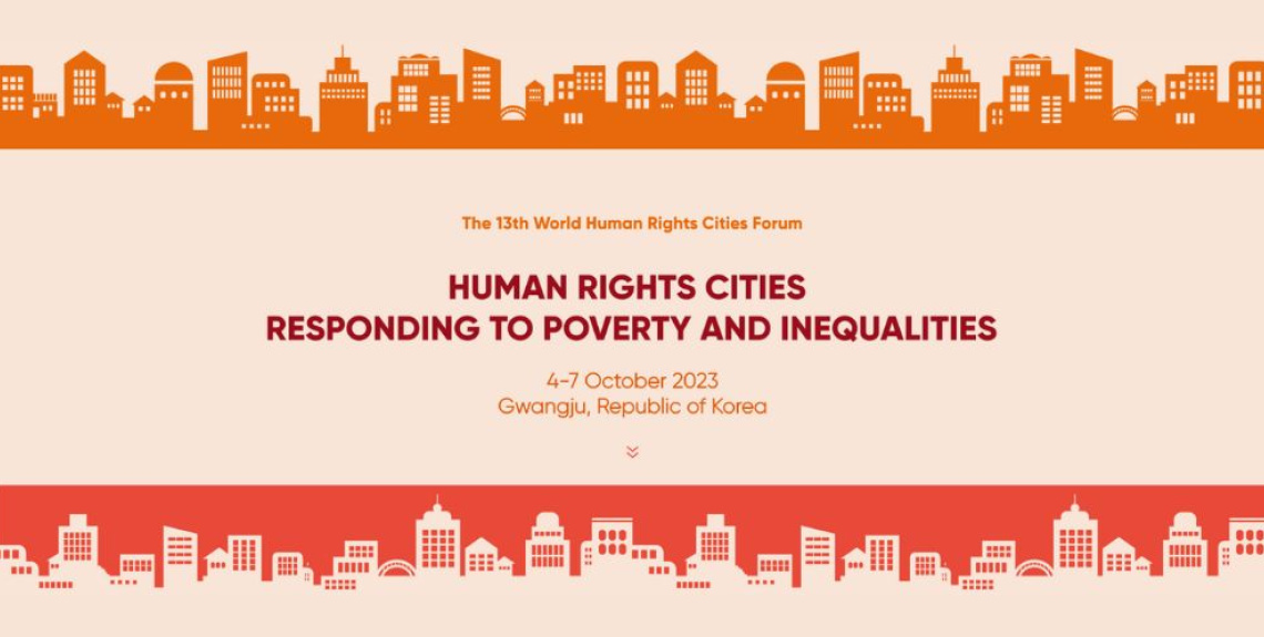 La Comisión de Inclusión Social, Democracia Participativa y Derechos Humanos de Ciudades y Gobiernos Locales Unidos (CGLU-CISDPDH) con su co-presidencia del Gobierno Metropolitano de Gwangju y el Instituto Raoul Wallenberg organizan el 13º Foro Mundial de las Ciudades de Derechos Humanos 2023 (WHRCF - World Human Rights Cities Forum), que tendrá lugar del 4 al 7 de octubre en la ciudad de Gwangju, Corea.