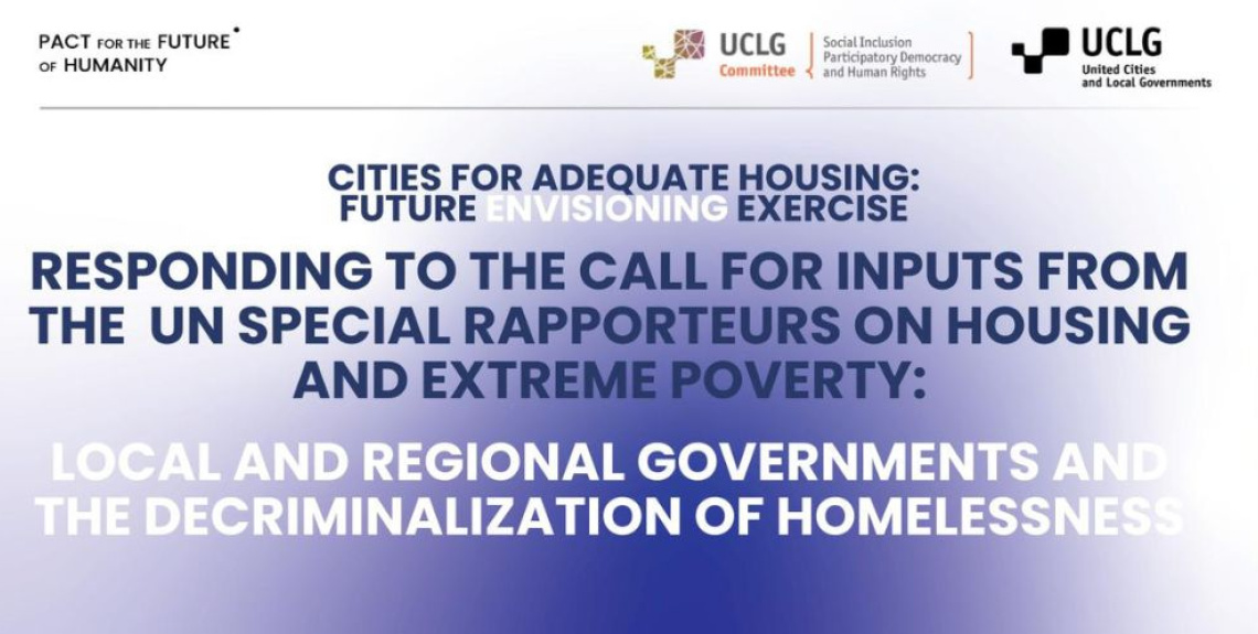 Como parte del trabajo de la Comunidad de Práctica de Vivienda de CGLU y de la Comisión de Inclusión Social, Democracia Participativa y Derechos Humanos (CISDPDH), para avanzar en la justicia de vivienda, le invitamos a unirse a una consulta en línea para compartir las realidades y experiencias de su ciudad/región en relación con el sinhogarismo. Puede encontrar aquí la agenda y los detalles de conexión para unirse a la consulta el 20 de septiembre de 16:30 a 18:30 horas CEST.