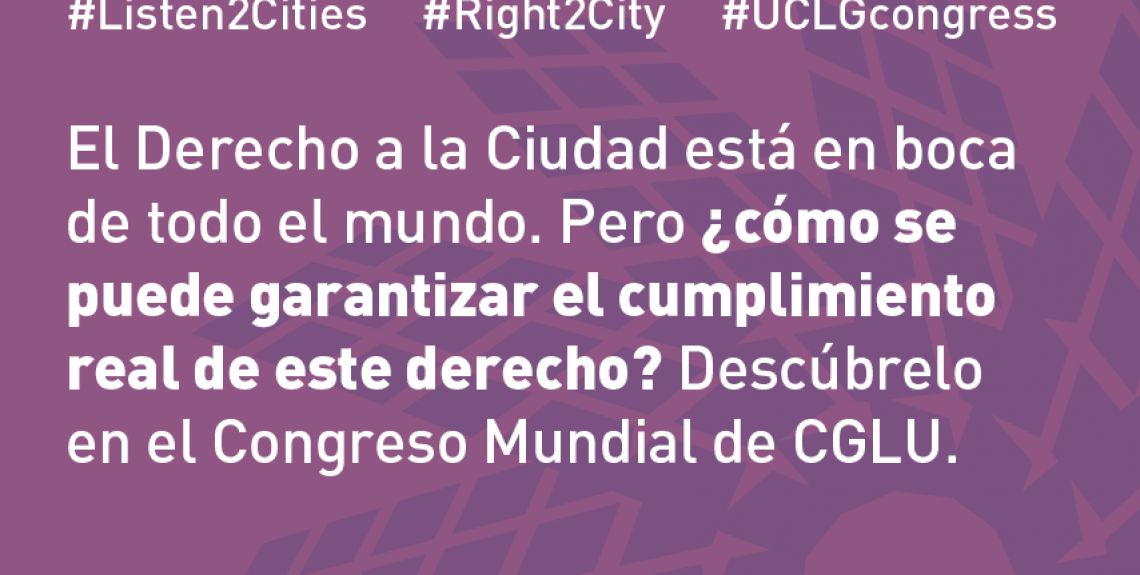 En vísperas de la Conferencia Hábitat III, gobiernos locales y regionales, representantes de la sociedad civil, del mundo académico y del Alto Comisionado de Derechos Humanos de Naciones Unidas se reúnirán en el Congreso Mundial de CGLU en Bogotá para debatir sobre cómo garantizar el cumplimiento real del derecho a la ciudad.