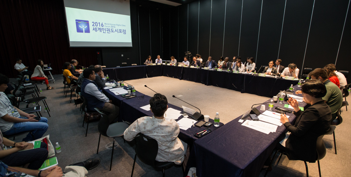 Del 21 al 23 de julio de 2016, nuestros co-presidentes de la Ciudad Metropolitana de Gwangju y el Gwangju International Center organizaron la sexta edición del Foro Mundial de Ciudades por los Derechos Humanos (WHRCF) con el apoyo de la Comisión de Inclusión Social, Democracia Participativa y Derechos Humanos de CGLU. El Foro permitió reforzar la red global de ciudades por los derechos humanos y situar la cuestión de los derechos humanos en la ciudad y del derecho a la ciudad en el marco del proceso de Hábitat III. En el marco del Foro, también tuvo lugar la reunión anual de la Comisión, que permitió presentar el trabajo realizado en 2015 y sentar las bases de la estrategia de la CISDPDH para los próximos años.