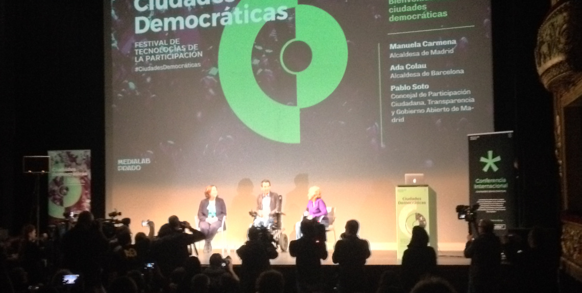 Du 16 au 18 novembre dernier, se tenait à Madrid la Conférence Villes Démocratiques organisée par la Ville de Madrid et le MediaLab Prado en partenariat avec la Commission Inclusion Sociale, Démocratie Participative et Droits Humains de CGLU. Trois jours de rencontres internationales pour échanger des expériences pour mettre les technologies de l’information et de la communication au service du bien commun et de la démocratie, réunissant cinq cents participants citoyens, représentants politiques, agents du service public local et hackers.