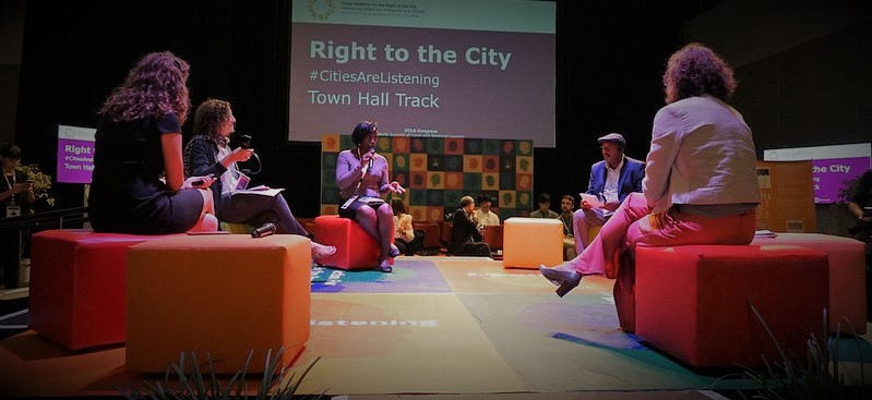 Ce débat international a pris forme dans la revendication dudit « droit à la ville », selon lequel la ville est un espace collectif qui appartient à toutes et à tous ses habitant(e)s et qui doit offrir les conditions nécessaires pour une vie digne d’un point de vue social, politique, culturel, économique et environnemental.