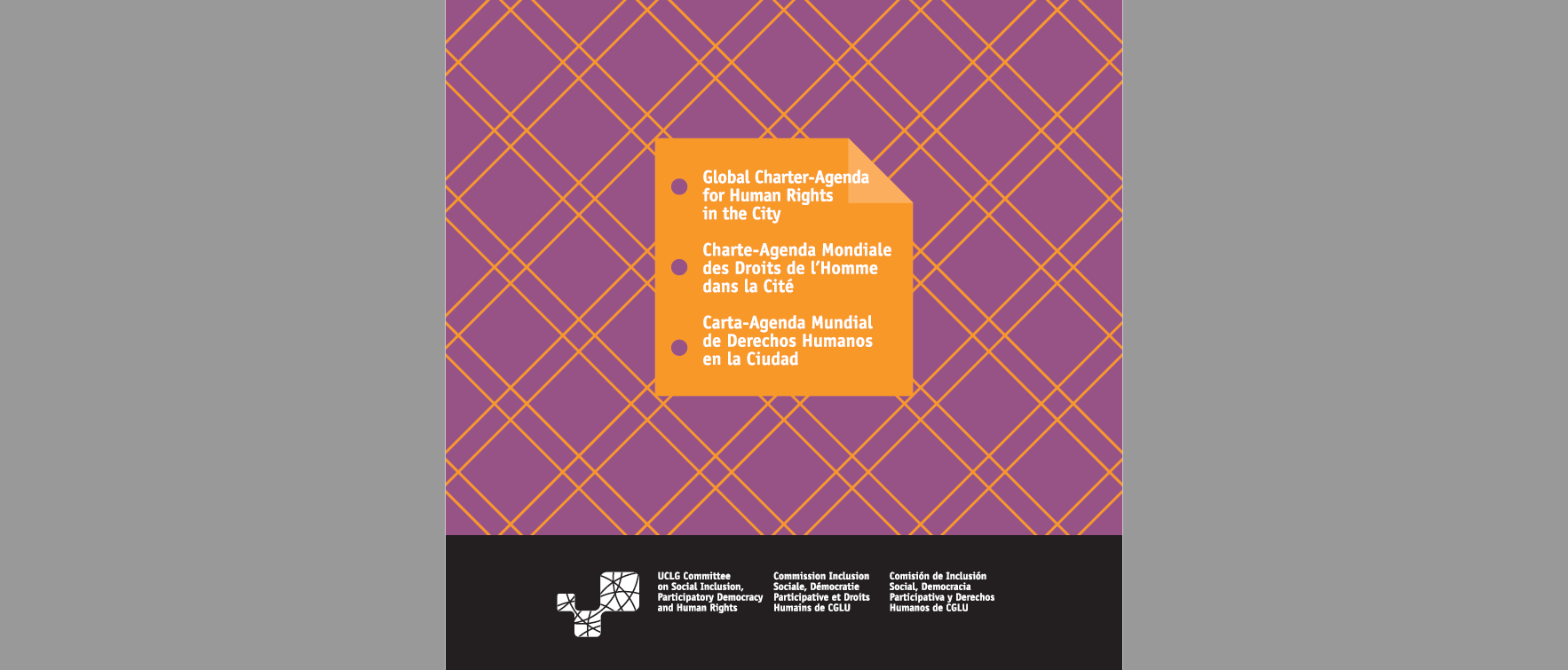 Dans le but de contribuer à la promotion internationale du droit à la ville, la Commission Inclusion Sociale, Démocratie Participative et Droits Humains de CGLU a rédigé la Charte-Agenda Mondiale des Droits de l’Homme dans la Cité, une initiative du Forum des Autorités Locales pour l’Inclusion Sociale et la Démocratie Participative (FAL), qui s’est tenu à Caracas en 2006. À partir des débats menés dans ce cadre entre les gouvernements locaux du monde entier, un groupe d’expert(e)s de différents pays a dressé un premier projet (2007-2008), qui a ultérieurement été discuté et amendé par des représentant(e)s élu(e)s, des expert(e)s et des représentant(e)s de la société civile des cinq continents (2009- 2010).