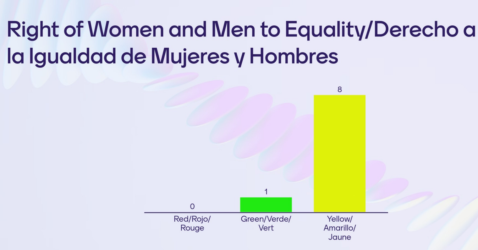 Parmi les principaux résultats du premier exercice, le comité de pilotage considère qu'il est nécessaire de s'éloigner d'une perspective exclusivement binaire pour adopter une approche qui tienne compte de la diversité des genres dans le "Droit des femmes et des hommes à l'égalité". Un autre appel est d'élargir le "droit à la démocratie participative" vers la co-création citoyenne et de nouveaux modèles pour inclure toutes les personnes dans l'action locale.