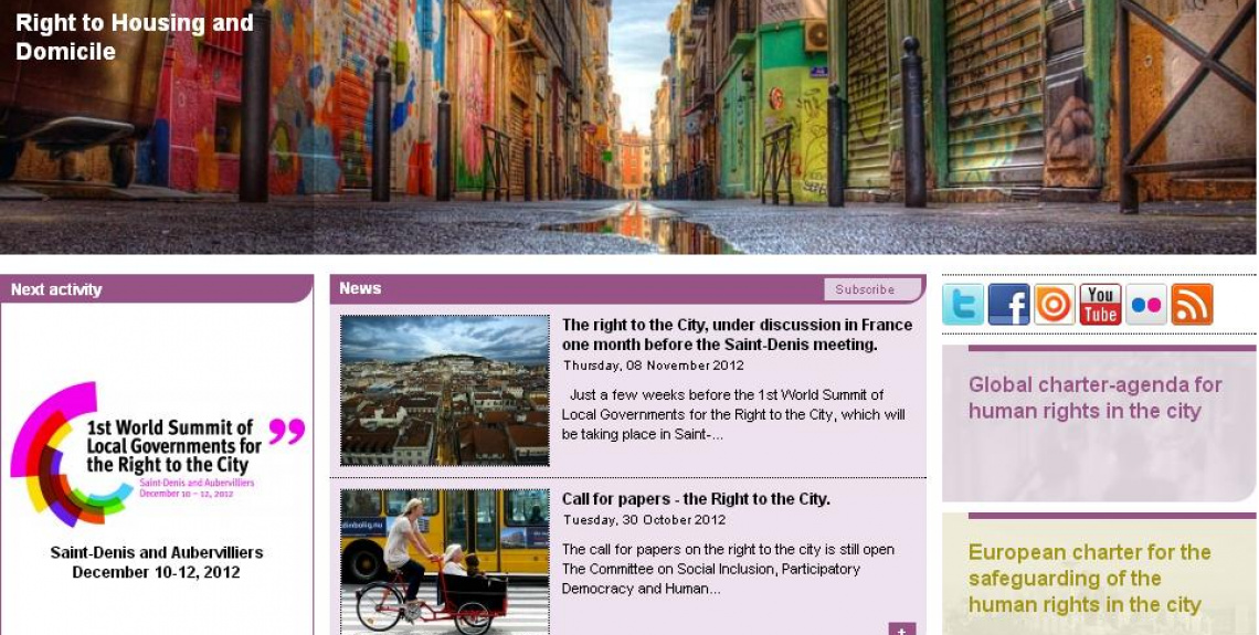 Veuillez noter que dans le paragraphe « Activités », vous trouverez l’information complète relative à la 1ère Rencontre mondiale des pouvoirs locaux pour le droit à la ville (v. « Prochaine activité »).