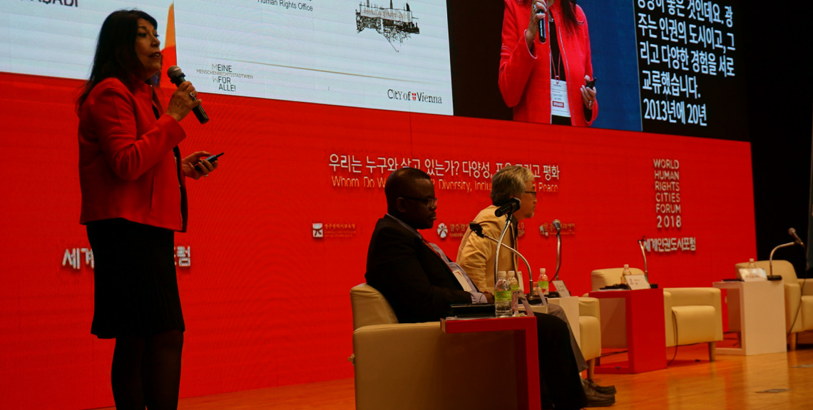 La Commissaire aux droits humains de Vienne, Shams Asadi, a participé en octobre dernier au Forum mondial des villes pour les droits humains 2018 (WHRCF) de Gwangju afin de présenter les initiatives de sa ville. À cette occasion, nous l’avons interrogée sur la vision portée par la Ville sur la mise en œuvre locale des droits humains mais aussi en tant que message fort à porter à l’échelle internationale.